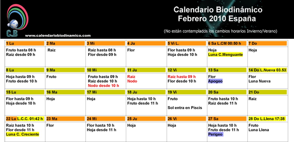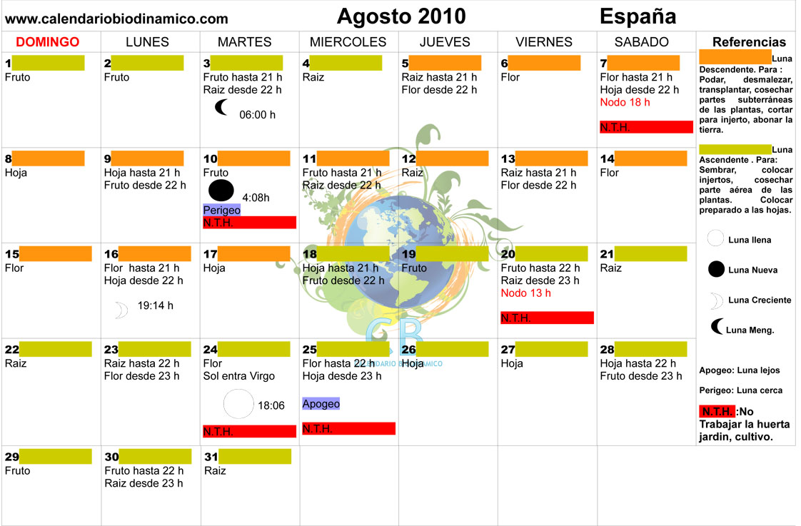 La Luna y su Influencia -Calendario Lunar Cannábico 2010 Hemisferio Norte-