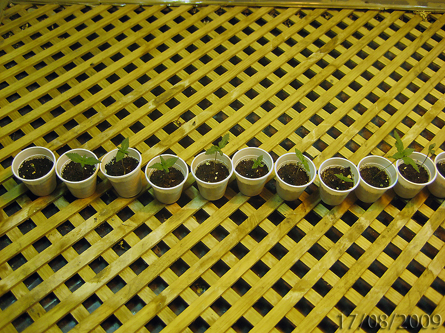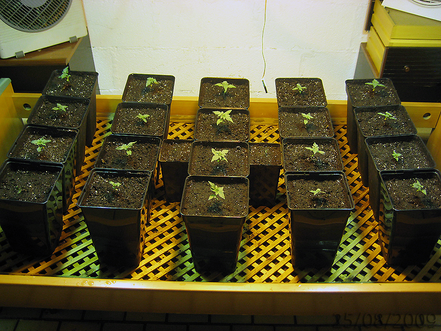 Buenas, aqui estamos con otro nuevo indoor, este cultivo ya empezo el dia 10/08/2009, esta compuesto por 20 plantas Blue Hash (Dinafem), en 15 tarros de 5,5L y 5 tarros de 6,0L. En el tema del riego, se regaran en crecimiento con Bio-Grow, empezando a regar con la dosis mas pequeña asta la dosis mas grande recomendada por el fabricante la tercera semana de crecimiento desde el dia 10/08/2009, en floracion, se regara con el bio-grow añadiendole la dosis mas pequeña y aumentandola asta el maximo recomendado por el fabricante ademas del Bio-Bloom con su dosis mas alta recomendada, las ultimas seis semanas de floracion se añadira el potenciador BloomBastic y las dos ultimas semanas se regaran solo con agua.